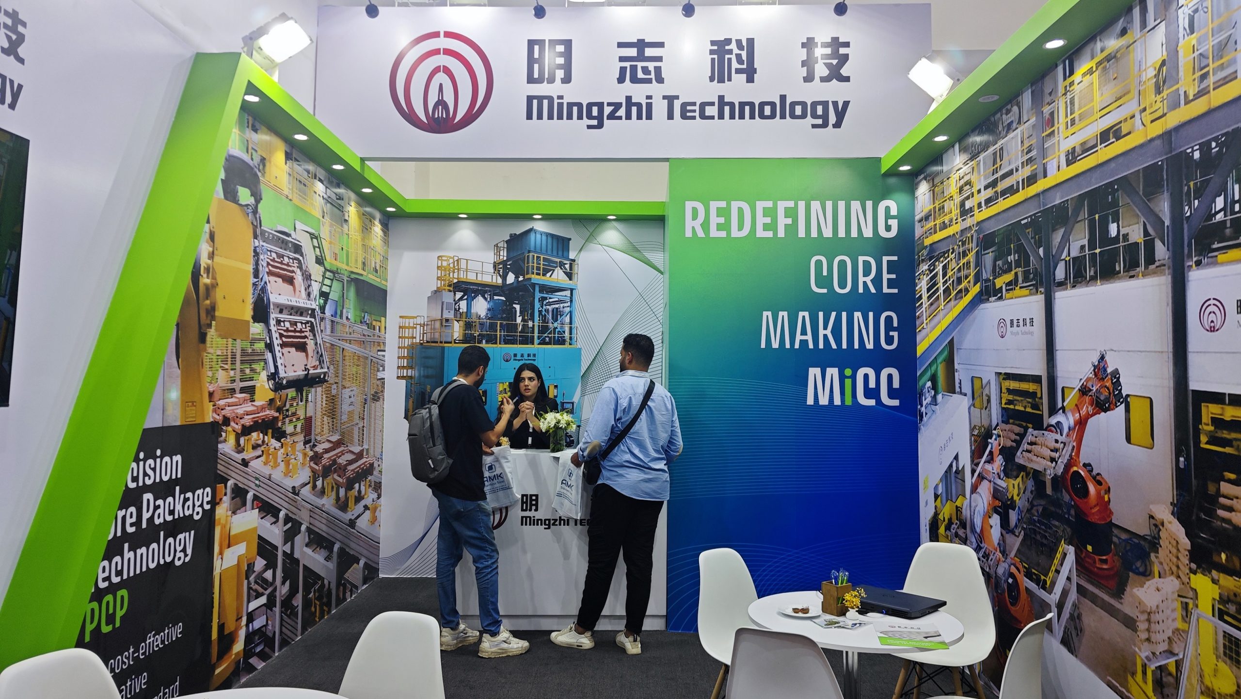 Während den dreitägigen Veranstaltungen unterhielt sich das Mingzhi-Team mit den Besuchern und präsentierte ihren Maschinen, das MiCC Integrierte Kernherstellungszentrum, das MiCL Intelligentes Kernherstellungskontrollsystem und die Präzisionskernpaket-Technologie (PCP). Die innovativen, automatisierten Lösungen steigern die Effizienz der Kernherstellung, verbessern die Qualität der Sandkerne und sorgen für eine bessere Umweltverträglichkeit, die Mingzhi sich für die langfristige Entwicklung der Gießereiindustrie einsetzt.
